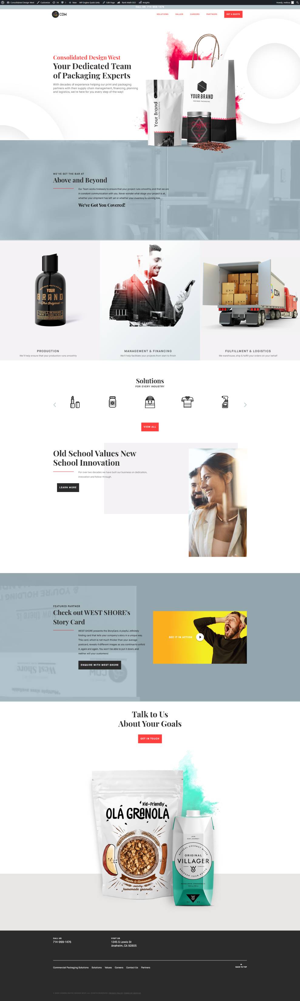 Consolidated Design West was looking to update their Wordpress website to a more modern look and flow. It was important to highlight that Consolidated Design West worked with Respect Manufacturing as partners to handle their clients primary and secondary packaging needs.